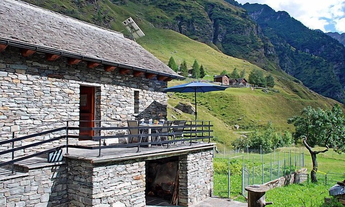 Fontané 15 km from Malvaglia: Important: Power is supplied by a solar panel. Stove, boiler and fridge are gas-operated. Electrical appliances over 250W can not be operated. Note: Mountain road 13 km from Malvaglia real time 25 minutes. >> The use of the access road to the Malvaglia Valley has become subject to a fee as follows: CHF 7.00/day CHF 15.00/week CHF 30.00/month. The fee can be paid either in cash with CHF or by credit card. The toll machine is located in Caslou, right after you cross the bridge. Beautiful, rustic single-family house "Rustico dell'Orino", 1'291 m a.s.l detached, renovated in 2005, surrounded by meadows. In the district of Fontané with 12 houses, in the district Val Malvaglia, in a quiet, elevated position, 10 m from the river, south facing position. Private: garden (not fenced) with lawn. Terrace, garden furniture. In the house: storage room for bicycles. 1.4 km long narrow motor access to the house (via unmade road, mountain road). 50 m footpath (5 steps) to the house. Width of access road: 300 cm. Parking at the house at 50 m. Shop 15 km, grocery 15 km, supermarket 15 km, shopping centre 18 km, restaurant 1 km, bakery 15 km, pub garden 6 km, bus stop "Malvaglia Orino 131/ 132" 9 km, railway station "Biasca SBB-FFC" 22 km. Walking paths from the house 5 m, cable car 6 km. Nearby attractions: Mulino di Dandrio, Museo della Valle di Blenio, Castello di Seravalle, Negrentino, Castelli di Bellinzona UNESCO, Splash und SPA + Monte Tamaro. Well-known lakes can easily be reached: Lago di Luzzone, Lago Retico (Lucomagno), Lago di Lugano, Lago Maggiore. Hiking paths: Montegreco, Capana Quarnei, Capana Prou, Val Malvaglia, Valle di Blenio. Please note: car recommended. Suitable for families. Animals in the neighbourhood.