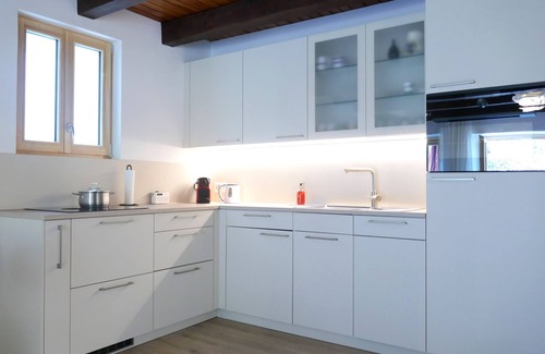"Rustico Emilio", 3-room house 64 m2. Object suitable for 2 adults + 2 children. Partly renovated in 2025, beautiful and cosy furnishings: open living/dining room with dining table, radio and heating stove. Exit to the terrace. Large, open kitchen (oven, dishwasher, 4 induction hot plates, kettle, electric coffee machine, Capsules for coffee machine (Nespresso) extra, fondue Set (cheese)). Upper floor: (spiral staircase), 1 double bedroom, ceiling height 240 - 400 cm with 1 double bed (1 x 160 cm, length 200 cm). Exit to the balcony, south facing position and west facing position. (spiral staircase), 1 room with 1 x 2 bunk beds (90 cm, length 190 cm). Shower/WC. Wood heating. Balcony, terrace 16 m2. Terrace furniture. Beautiful view of the mountains, the countryside and the resort. Facilities: washing machine, iron, mosquito net, children's high chair, baby cot for up to 2 year olds (extra), hair dryer. Please note: suitable for families. Non-smoking house.