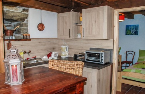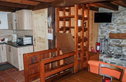 "Rustico Fey", 2-room cottage 50 m2 on 2 levels, south facing position. Comfortable and cosy furnishings: open living/dining room with open-hearth fireplace, dining table and TV (flat screen), radio. 1 room with 2 beds (90 cm, length 200 cm). Open kitchen (mini-oven, Gas stove, 3 gas rings, toaster, electric coffee machine) with bar and wood-burning stove. Exit to the patio. On the lower ground floor: (steep stair). Shower/WC. Terrace furniture, barbecue (portable), deck chairs (2). Marvellous panoramic view of the mountains, the valley and the countryside. Facilities: children's high chair, baby cot for up to 2 year olds (extra), hair dryer. Please note: non-smoking house. Maximum 1 small pet/ dog allowed. Fire extinguisher. NL-00003747