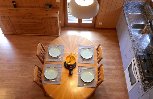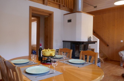 "Rustico Fortuna", 3-room chalet 80 m2 on 3 levels. Partly with sloping ceilings, simple and rustic furnishings: open living/dining room with open-hearth fireplace, dining table and radio. Exit to the balcony. 1 room with 1 x 2 bunk beds (90 cm, length 200 cm). Open kitchen (oven, Gas stove, 4 gas rings, fondue Set (cheese)). Exit to the balcony. Shower/WC. Gas heating, wood heating. Solar power. Upper floor: open gallery with sloping ceilings with 1 double bed (1 x 160 cm, length 200 cm). Patio. Terrace furniture, barbecue, deck chairs (2), sitting area. Beautiful view of the mountains. Facilities: children's high chair, baby cot for up to 2 year olds (extra). Please note: suitable for families. Non-smoking house. NL-00003913