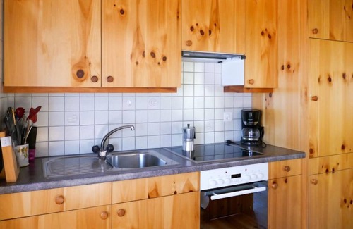 "Rustico Stübii", 2-room cottage. Object suitable for 2 adults. Rustic and cosy furnishings: open living room with open-hearth fireplace and satellite TV. 1 double bedroom with 1 double bed (1 x 160 cm, length 200 cm). Open kitchen (4 ceramic glass hob hotplates, toaster, kettle, fondue Set (cheese)) with dining nook. Shower/WC. Electric heating, wood heating. Barbecue (portable), deck chairs (2), sitting area. Very beautiful view of the mountains and the countryside. Facilities: hair dryer. Internet (WiFi). Please note: non-smokers only. Fire extinguisher. Possibility of charging e-bikes and washing. NL-00001914