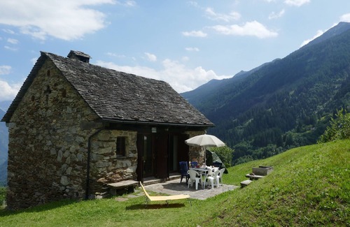 Crènn 13 km from Malvaglia: Large, child friendly single-family house "Rustico Tecc du Martin", 1'120 m a.s.l surrounded by fields. 2 km from the centre of Leontica, 24 km from the centre of Biasca, 45 km from the centre of Bellinzona, in the district Valle di Blenio, in a sunny, elevated position, 100 m from the edge of the forest, in a cul-de-sac, in the countryside. Private: natural state property 400 m2, meadow. Garden furniture. 100 m long bumpy motor access to the house (via unmade road, mountain road). Parking on the premises. Shop 5 km, supermarket 9 km, restaurant 4 km, bakery 17 km, bicycle rental 7 km, bus stop "Leontica Chiesa 133" 2.5 km, railway station "Biasca FFS - SBB" 20 km, outdoor swimming pool 45 km. Riding stable 4 km, walking paths from the house 10 m, chair lift 4 km. Nearby attractions: Castello di Seravalle 12.5 km, Museo Valle di Blenio, Lottigna 9 km, Archivio Fotografico Donetta 5 km, Castelli di Bellinzona UNESCO 45 km, Mercato di Bellinzona Sabato 45 km, Splash & Spa, Monte Tamaro 53 km. Well-known lakes can easily be reached: Laghi di montagna Retico, Luzzone, Ritom, Lago Maggiore, Locarno 65 km, Lago di Lugano 70 km. Hiking paths: Nara, Lucomagno, Valle di Blenio, Dötra, Centro pro-natura Lucomagno, Val Malvaglia, Valle Leventina. Please note: car recommended. Suitable for families. Animals in the neighbourhood.