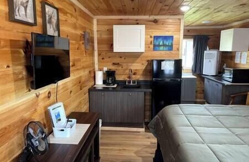 Small rustic, cozy cabins in the “Northwoods” on an awesome piece of property. The cabin has views of Lake George & is steps away from our private 200 feet of lakefront on Ruth Lake which includes 2 full acres of property. This is part of a resort. The lakefront and grounds are shared with the other cabins. The property is 2 full acres and features lots of green space as well as 200 feet of waterfront on Ruth Lake. One king size bed, electric fireplace, a table for dining, a kitchenette equipped with mini-fridge, microwave, toaster, skillet, coffee pot, dishes and sink along with full private bath. It is all about the outdoor adventure here. You will find the coveted snowmobile/ATV Trail 8 just down the road. We have room for your trucks and trailers. UP waterfalls, kayaking, hiking, hunting and fishing on the thousands of awe-inspiring acres of public land surrounds this amazing property. The lakefront and grounds are shared with the other units with plenty of space for all.