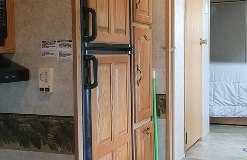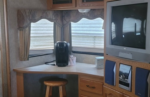 RV Executive Home IV. When you come to our "Happy Place" you receive the best quality, hospitality and luxury in every RV unit we have on our property. Whether you want to walk our tranquil grounds expressing our colorful horticulture to our In-door Inground Heated Pool. Swim day or night in the illuminated water and Hot Tub. Come stay anytime of the year to achieve the happiness you so much deserve. Please enjoy Full Kitchen, Island, Residential Fridge, Full bathroom. Living Room, Full Master bedroom. Everything included just bring your Personal Items and enjoy "Our Happy Oasis"