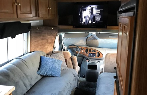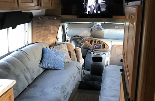 A cute small Rv perfect for a couples gate away with portable bathroom, shower, air conditioning, loft bed, sink small electric stove, 32' tv with roku included, small refrigerator, radio works great, it includes blankets pillows and basics needs . In excellent condition to get on the road and drive to your favor camping sites and enjoy the great out door with love ones. IT DOES NOT INCLUDE TABLE or CHAIRS