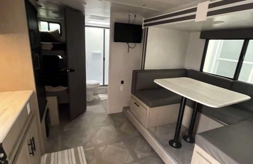 Located in Brentwood, enjoy what this 1-bedroom recreational vehicle has to offer. This phenomenal space features 1 queen bed in the cozy bedroom and a bunk bed in the living room. With heating, AC, WiFi, and a hair dryer provided, guests can relax and unwind after a day of exploring. Experience what Brentwood has to offer with a stay at our recreational vehicle.