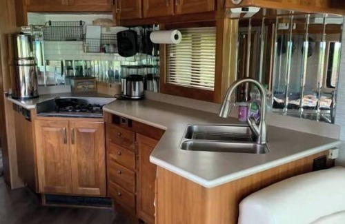 The Motorhome is parked & not drive-able to Guests, just a sleeping quarters & to have fun! Our Rv offers 1 Queen Bedroom, two bunks for kids & 2 couches pull to each-other that sleeps 2 adults or 4 kids, a bathroom, fully furnished kitchen area with coffee maker & outdoor picnic table with grill.