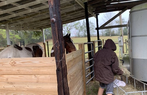 Stop over in your own RV or horse trailer with living quarters just 2 miles from I-10 at the Baldwin Beach Express Exit. Park and hookup under cover of a pole barn. Power, septic, water. Rest your horses in a 1.25 acre paddock with a run-in shelter that is right next to your RV or Trailer. Run-in can be used as a stall 12x24. This is not a campground but, rather a nice place near the interstate to rest and recharge before continuing on your journey. There are restaurants and groceries within 10-15 minutes. Your own RV or horse trailer with living quarters are required. We offer no amenities such as sleeping quarters, kitchens, bath, laundry or food. The VRBO format requires that we list a bedroom and a bathroom BUT THERE ARE NONE. Guests provide their own quarters. We have two medium dogs that have the run of the property but are friendly although they will bark at first. You may walk or run your dog on or off leash at your own risk. You may bathe your horse although there is no official wash rack or supplies. You may take walks anywhere on the property except the main home and its immediate yard. Guests do not have access or any use of our barn. Strongly advise arriving before dark.