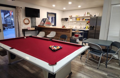 Clubhouse is available to all with A/C, heat, free laundry, full kitchen including dishwasher. Full bathroom with spacious shower. Pool table, TV programmed with Hulu and Netflix, games etc. There is a deck with seating area, bbq, flat grill and a fire pitt beside the clubhouse with seating.