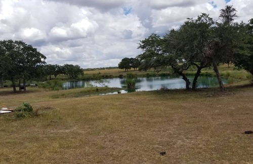20x50 concrete pad with ability for full hookup. There is no cover or height restriction. Approximately 18.9 miles from the Round Top Antique Fair. Convenient to Giddings for all the essentials and plenty of restaurants to try. This is on a 25 acre property with a large pond where you are welcome to relax on the deck, paddle boat, or do a little fishing. Full hookup is available for $10 more per night. There is no dump station on site. 50Amp