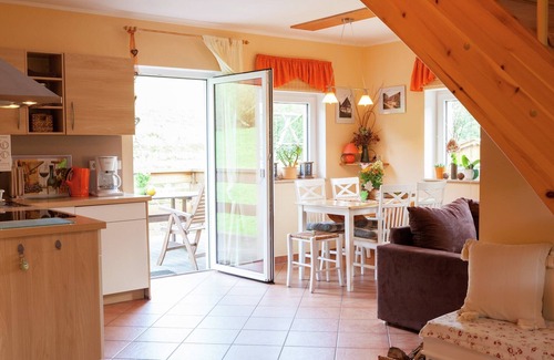 Set in the tranquil village of Lohsdorf, near Hohnstein, this charming two-level holiday home offers a cozy and pet-friendly retreat for up to 6 guests. The ground floor features a living/dining room with a double sofa bed, satellite TV (including Dutch channels), DVD player, radio, and a wood-burning stove for added warmth. The open kitchen is fully equipped with a ceramic cooker, oven, microwave, filter coffee machine, toaster, and fridge.