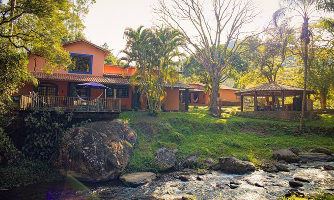 Sítio Villa Morada das Pedras is a paradisiacal place that invites you to contemplate and enjoy its exuberant nature, with many birds and surrounded by native green on all sides! The river that cuts across the property is crystal clear, whose noise quickly reassures the mind upon arrival. Perfect to rest and enjoy with family and friends. Pleasant climate in both summer and winter.
