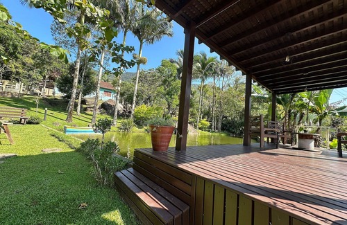 Multitemporada.com presents the Sítio Morada Do Pai, a refuge bathed in the sun and surrounded by nature to the sound of the waterfall very close to the free flight tracks Morro da Pipa and Santa Paulina. We have available a wood stove, children's pool, barbecue, WI-FI internet, full kitchen, washing machine, bed linen and a small boat for sailing on the lake.