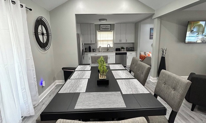 S.V. Hideway is an Urban rental with a Suburban feel, nestled on a hill adorn with comfort, allowing you to relax and release once your done with your activities and exploring Metro Birmingham. Downtown is 20 mins away, food and shopping 5 mins away, the Great River Outlet, Buc'ees, and Birmingham Shuttleworth Int'l Airport about 12 minutes away. S.V. Hideaway is a 3 Bedroom with four beds that sleeps 8 and two bathrooms with a fenced in backyard. TV's are located in every bedroom, Living room, and Sitting Room. We look forward to Hosting you and your guests.