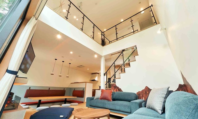 2nd floor 2 bedrooms loft bed relaxation and healing space such as freeflowing hot springs There are 5 double beds
