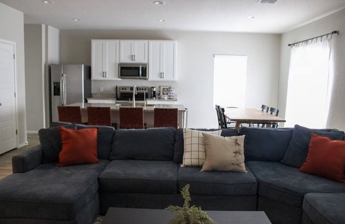 Sit back and relax while you enjoy our comfortable couch and watch your favorite show or movie on our 70 inch TV located in the living room. It has access to different subscription services such as Netflix, Disney+, Hulu, etc. The King and Queen bedrooms each have smart TVs as well. Feel free to login to your own accounts to watch from and then log out at the end of your stay.