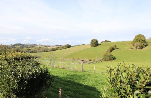 Detached, single-storey gîte in an old 17th century farmhouse. renovated. Pleasant site offering a beautiful view of the Basque mountains. Large entrance hall with lounge area opening onto terrace (TV, DVD player, wood stove). Equipped kitchen (gas cooker, dishwasher, oven and microwave, gas hob). 3 bedrooms (4 single beds, 1 double bed). Bathroom (washing machine). WC. Possibility to rent sheets, towels. Electric heating and wood supplement. Terrace, enclosed grounds, garden furniture, barbecue.