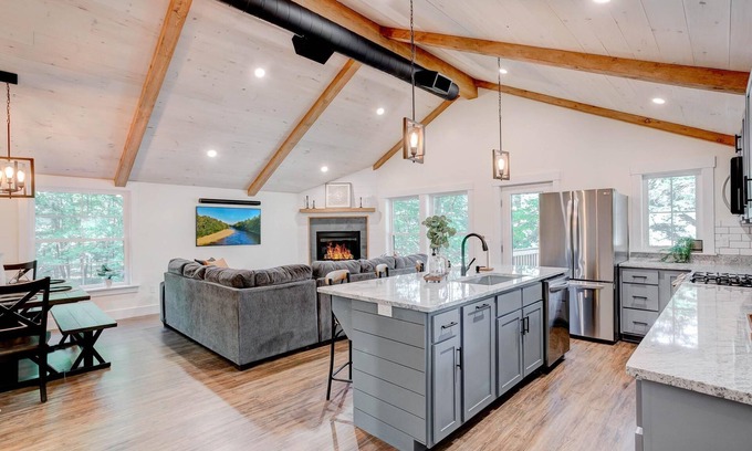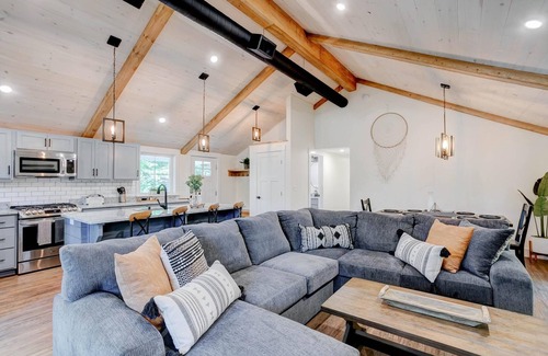 You’ll fall in love with this beautifully renovated modern farmhouse-style home, featuring soaring cathedral ceilings and high-end rustic finishes. Relax by the cozy gas fireplace, kick back, and enjoy your favorite shows with premium streaming services and a Sonos sound system. The fully stocked kitchen, complete with new appliances and cookware, is perfect for cooking and baking at home. After a long day, sink into the brand-new memory foam beds for a restful night’s sleep.