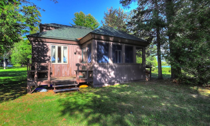 FAQs: This property has a shared waterfront access with a sandy beach, dock, fire pit, and canoes/kayaks. This property also has a charcoal grill available mid-May through mid-October.