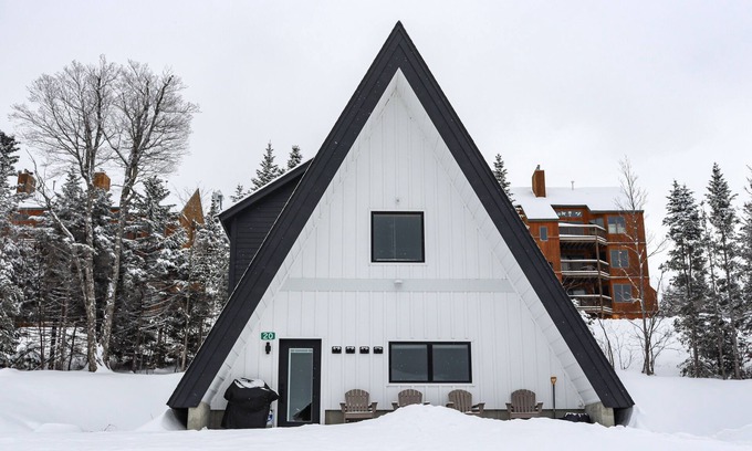 Parmachenee A-Frame #20 - Lupine Lodge is a custom-built freestanding A-frame vacation rental located just below the Saddleback Base Lodge on Saddleback Mountain in Rangeley, Maine. With easy ski-in/ski-out access, you can enjoy direct access to the Smelt Streamer ski trail right from your doorstep. The property offers breathtaking views of the surrounding mountains, making it an ideal location for outdoor lovers looking to explore the beauty of Saddleback Mountain year-round.