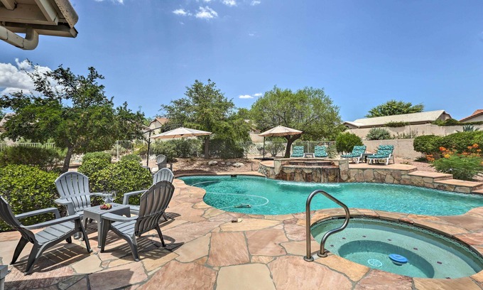 Saddlebrooke Home w/Private Pool & Amenities is located in Saddlebrooke. Saddlebrooke Home w/Private Pool & Amenities provides accommodation, featuring Air Conditioner, TV, Bedding/Linens, among other amenities. This House features Air Conditioner, TV, Bedding/Linens, to make your stay a comfortable one.