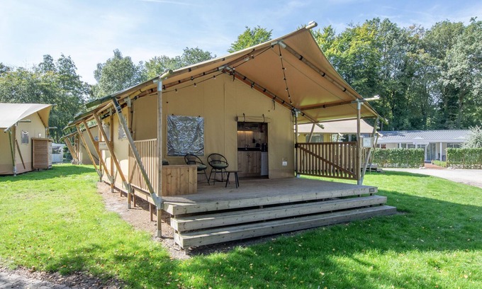 Cozy Glamping in the Heart of Nature Tucked within the tranquil woods of Holiday Park Klein Vink, this detached safari tent offers the ultimate blend of rustic charm and modern comfort. With its warm wooden finish and inviting interiors, you’ll enjoy a camping experience with a touch of luxury. The tent features a cozy living area, fully equipped open kitchen, and two bedrooms—one with a romantic double bed under a mosquito net and the other with a classic bunk bed. A private bathroom with shower and toilet adds convenience, while the stylish design makes it feel like a boutique retreat in the wild. Please note: pets are not allowed. Peaceful Surroundings with Easy Access Set just 4.5 km from the picturesque village of Arcen and 16 km from the vibrant city of Venlo, this tent lodge is perfect for nature lovers who appreciate accessibility. Spend your mornings with coffee on the veranda, surrounded by birdsong and fresh air. The park features serene walking paths, wooded trails, and a shared swimming pool for cooling off on sunny afternoons. Parking is available close to your tent for added ease. Local Flavors & Village Charm Nearby Arcen offers delightful cafés, bakeries, and restaurants like Het Maaspaviljoen and Alt Arce, perfect for enjoying regional dishes or a glass of wine by the water. After exploring De Maasduinen National Park or local thermal baths, return to your glamping retreat and unwind under the stars. Note: Between September 7 and 11, 2026, a large group will be staying at Klein Vink. The group will host party evenings on Monday and Tuesday in the general parking area. Please be aware that these events, as well as the group’s stay, may result in some noise disturbance during this period. We appreciate your understanding.