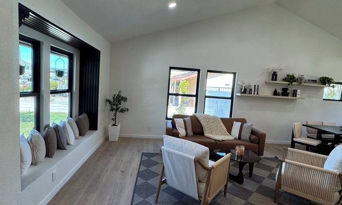 Located in Thousand Oaks, this house is a dream. With 3 cozy bedrooms and 3 bathrooms, guests can relax and unwind in this perfect retreat. AC and WiFi are available for your convenience. Enjoy all that Thousand Oaks has to offer when you stay at our place. Enjoy the fire pit at night and a huge 9ft island to hose dinner! The space has been curated and decorated with charm and attention to detail. Huge soaker tub in master as well as beautiful shower design and open concept floor plan.