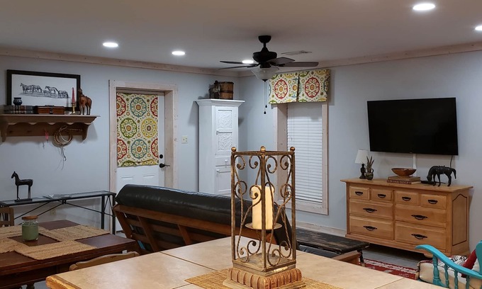 The barn house apartment is cozy and comfortable with 2 spacious bedrooms, 1 and a half baths, laundry room full kitchen and sitting area. Close and easy access to downtown Clarksdale and Helena, AR for blues fans.