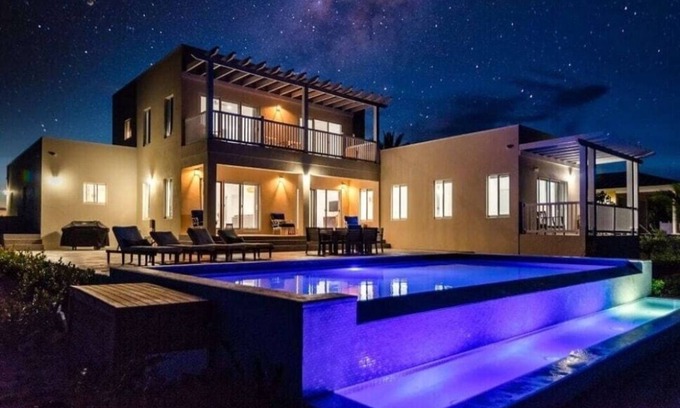 Saffron House is a modern and airy home located directly on a quiet and sandy beach. Enjoy walking to a nearby restaurant, only 5 minutes away beachside or lounge at the infinity pool. Take advantage of both sunrise and sunset views from one of 4 patios.