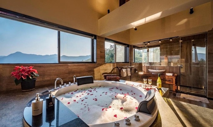 SaffronStays Althea - 4 BRD Veg Only Villa In Pawna With Jacuzzi In Every Room offers accommodations in Lonavala, 5.9 miles from Tiger Point. This property offers access to a balcony, table tennis, free private parking, and free Wifi. The villa provides a pool with mountain views, hot tub, and a concierge service. Composed of 4 bedrooms, this spacious air-conditioned villa features 5 bathrooms with a walk-in shower, a bath, and free toiletries. Towels and bed linen are provided in the villa. For added privacy, the accommodation features a private entrance. A vegetarian breakfast is available at the villa. The villa also offers outdoor fireplace and a picnic area for a day outdoors. Pune International Airport is 46 miles away.