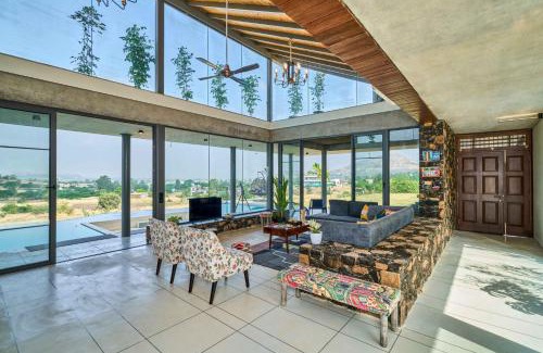 SaffronStays AnjanAiry offers accommodations in Trimbak, 15 miles from Someshwar Temple and 15 miles from Pandavlena Caves. This property offers access to a balcony, a pool table, free private parking, and free Wifi. Mountain views are a highlight at the villa's pool. Offering 4 bedrooms, this spacious air-conditioned villa features 4 bathrooms with a bath, a shower, and free toiletries. There is a seating area, a dining area, and a kitchen complete with a microwave and a fridge. For added privacy, the accommodation has a private entrance and is protected by full-day security. SaffronStays AnjanAiry offers an Asian or vegetarian breakfast. For guests with children, the accommodation features an indoor play area. With an outdoor fireplace and a picnic area, this villa offers plenty of opportunities to unwind. Sundarnarayan Temple is 17 miles from SaffronStays AnjanAiry, while Shri Kalaram Sansthan Mandir is 17 miles from the property. Nashik Airport is 29 miles away.
