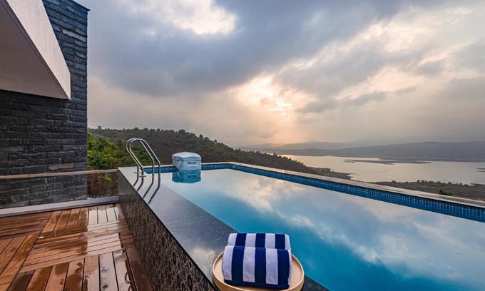 SaffronStays Kaia Waters by Kosha Villas, Pawna - Greek style villa with panoramic view of Pawna lake | Villa in Kolvan