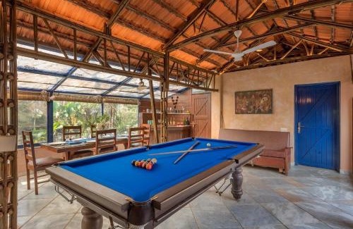 SaffronStays Terra Soul, Raigad is located in Jambhulpāda, just 19 miles from Adlabs Imagica and 31 miles from Kune Waterfalls. This property offers access to a balcony, a pool table, free private parking, and free Wifi. On clear days, guests can head outside to enjoy the villa's outdoor fireplace or simply kick back and relax. The spacious villa includes 3 bedrooms, a living room, and 3 bathrooms with free toiletries and a walk-in shower. Towels and bed linen are featured in the villa. For added privacy, the accommodation has a private entrance and is protected by full-day security. There is an on-site bar. Guests can enjoy the pool with a view and garden at the villa. Chhatrapati Shivaji International Mumbai Airport is 54 miles away.