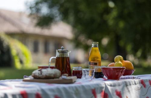 Safranerio offers accommodations in Sabres, 20 miles from Mont de Marsan Train Station and 24 miles from Mont de Marsan Golf Course. Both free Wifi and parking on-site are accessible at the vacation home free of charge. The vacation home is also equipped with a garden, an outdoor swimming pool, and a terrace where guests can wind down. Safranerio features 2 bedrooms, a fully equipped kitchen with a dishwasher and an oven, a washing machine, and 1 bathroom. Towels and bed linen are offered in the vacation home. The accommodation has a fireplace. Bordeaux–Mérignac Airport is 63 miles from the property.