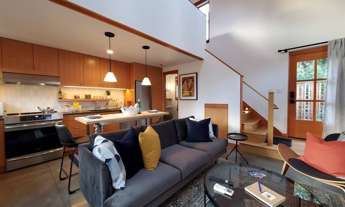 Your Portland adventure begins at this fabulous 1-bedroom cottage. The cozy space features a queen bed, 2 bathrooms with shower amenities, and all the essentials like WiFi, washer/dryer, AC, and private outdoor spaces. Immerse yourself in the charm of Portland at our adorable cottage.