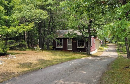 Adorable old fashion log cabin with tons of charm 350 feet from Lake Huron. Property is on Lake Huron for beautiful views all guests can enjoy. The interior is vintage and cozy. Claw foot tub with updated shower stand added. One bedroom has bunk full beds and other had one full bed. Guests have access to Lake Huron and the deck and steps built at the waters edge. There is a picnic table at the water egde as well and a badminton net. Host lives on site and is available whenever home to assist guests with their needs. The property has two other cottages and owners home. There are a lotof trees and not many neighbors. It's quiet and peaceful. We have many many bird species and lots of black squirrels and chipmunks to watch. Lake Huron is a short walk down the driveway for beautiful views. We have a picnic table and hammock at the water front for all guests to enjoy. Bring your bike and take a ride down Baldwin Resort Rd to Tawas Beach where you can take the bike lane all the way to the Tawas Point State Park or into town This property sits on wooded sand dunes next to Lake Huron. It is rural and quiet. However, because it is next to the lake and in the woods we share our property with nature. We take every precaution to keep nature outside but this is a 1950's style cabin and sometimes nature comes in anyway. Wifi is functional but slow. Not recommended for streaming.