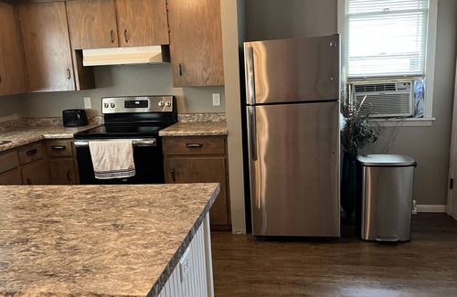 This is a 3 bedroom home. Two bedrooms have queen beds and one is a full size along with a twin futon. There is a full bath on the main level and another full bathroom in the basement. There is a quiet shaded yard and fenced in patio area. A grill is provided along with charcoal and lighter fluid. There is also a full size kitchen, dining area, and living room with TV. WiFi is provided.