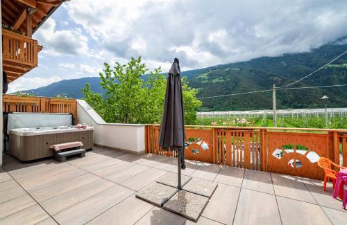 7.1 miles from Main Train Station in Plaus, Sagschneiderhof Golden Delicious provides accommodations with access to a hot tub. This property offers a private pool, free Wifi, and free private parking. Outdoor seating is also available at the apartment. Providing a terrace and mountain views, the apartment includes 1 bedroom, a living room, satellite TV, an equipped kitchen, and 1 bathroom with a hot tub and a shower. Towels and bed linen are provided in the apartment. For added privacy, the accommodation features a private entrance. Guests at Sagschneiderhof Golden Delicious can enjoy cycling and hiking nearby, or make the most of the garden. Princes' Castle is 7.7 miles from the accommodation, while Merano Theater is 7.7 miles away. Bolzano Airport is 25 miles from the property.