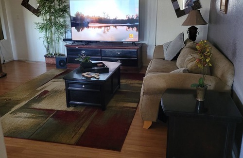 Beautiful location nestled in the midst of the Saguaro National Park Westside. Beautiful hiking trails and tons of petroglyphs make for a wonderful desert walk. In the night, enjoy open skies and watch the stars glimmer without light pollution. If this is not your thing, enjoy a movie on the 78" television with access to all your subscriptions on roku with reliable internet. You will also have plenty of room to soak in the tub or take a relaxing shower and sleep comfortably in a brand new king size bed with comfy pillows.