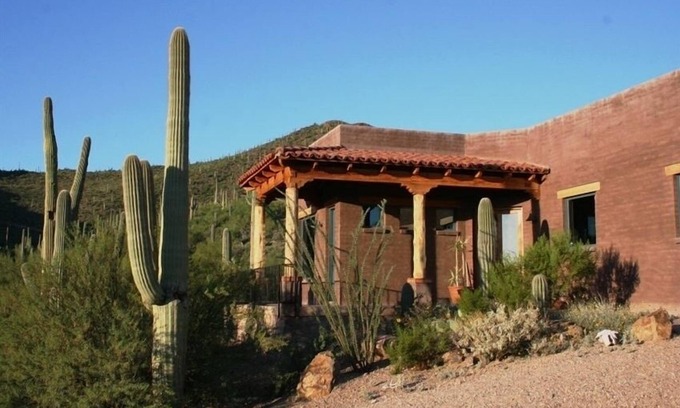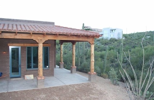 FIRST CLASS! YOUR GOING TO WANT TO STAY HERE! PLEASE CALL or e-mail. Tucked deep in the Tucson Mountains west of Tucson proper, this newly constructed ranch-style villa is a secluded hideaway that boasts privacy and comfort. This quaint villa has 1100 sq ft of living area with mission tile porches wrapped around the entire home. A sahuaro studded 3.3 acre lot cradles the home as it blends into the undisturbed landscape just a minute's hike from Tucson Mountain Park. Tucson Mountain Park is a natural undisturbed desert enviroment.