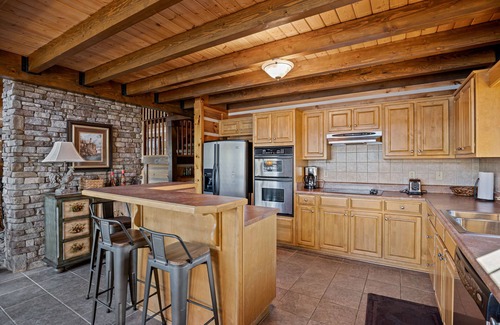 Inside you will find a beautiful rustic welcoming lake feel. Enjoy the fantastic views from almost any room in the house! The main level has a fully stocked kitchen equipped with a drip coffee pot and a dining room with seating. Kick back and relax in the living room or enjoy a game of pool in the bar room! You’ll also find the primary bedroom with a king bed and en-suite bathroom on the main level as well as a room with two bunks that are twin-over full. Upstairs, there’s a loft with an extra living area to relax and watch tv, play games, or take a nap. There are two bedrooms on this level with queen beds and one bathroom.