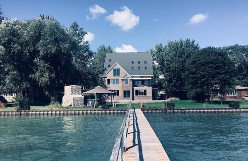 St. Clair North Channel gorgeous blue water invites you to swim and fish.Private spacious dock furnished with table and lounge chairs for complete rest and relaxation while sunbathing. Ideal morning and evening walks on the waterfront. Outdoor grilling, fireplace, dining and water sports suited for a perfect family vacation or romantic getaway. From sunrise to sunsets, peaceful and inspiring views. Stroll into nearby town for ice cream by the boardwalk or the Village Park for the children.