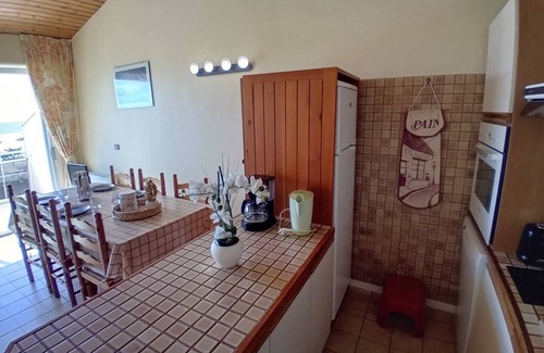 This APARTMENT of approx. 39m², on the 1st floor (no lift), comprises an entrance hall, a living room with a lounge - dining area (flat-screen TV) and a kitchen area equipped with 2 hotplates, a hood, an electric oven, a microwave, a filter coffee maker, a kettle, a toaster, a fridge with a freezer section and a dishwasher...