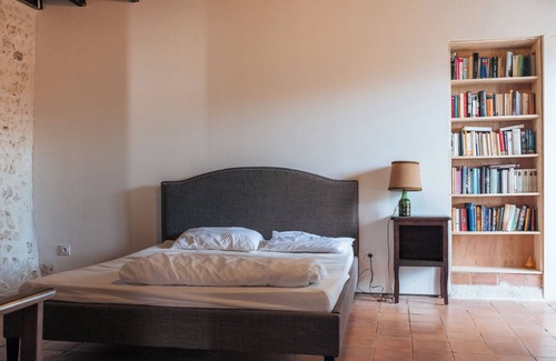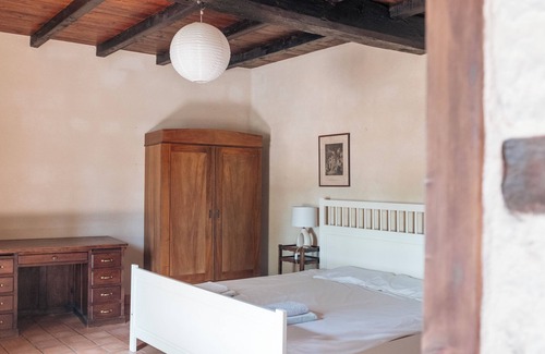 On cooler evenings you can light the fire and sink comfortably into the armchairs. The floor of the house is made of the typical Charentais clay tiles. The house has two spacious bedrooms. One bedroom is equipped with a double bed and the second with a king-size bed (180x200cm). There is a bathroom with shower and toilet. All rooms are equipped with heaters.
