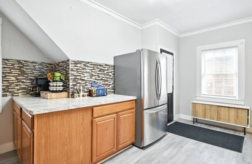 Features include a fully equipped kitchen, multiple living areas, high-speed Wi-Fi, and free street parking. Minutes from downtown, museums, colleges, and the Basketball Hall of Fame. Walkable area with easy access to transit and highways.