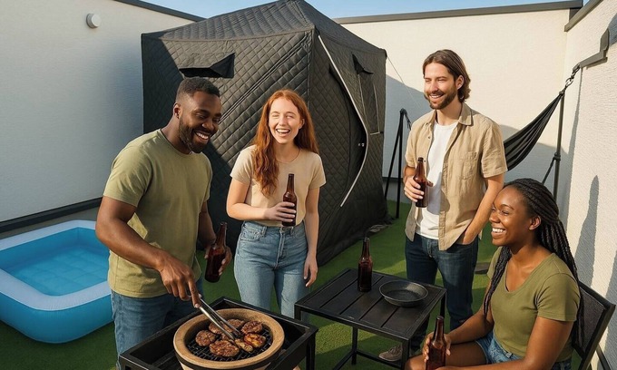 - The Camping Yard Higashi Matsuyama" - BBQ, campfires, and tents available for overnight stays.