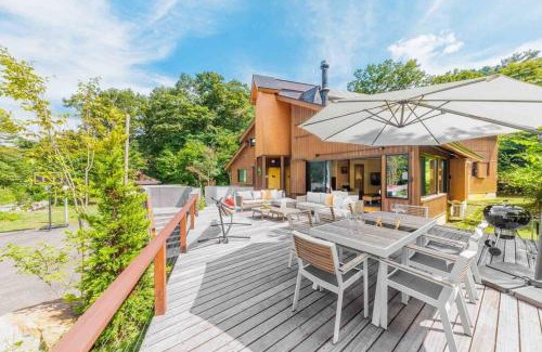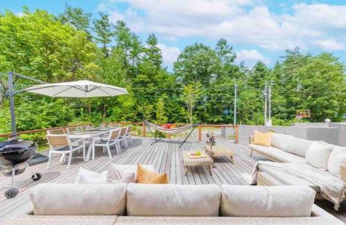 7.5 miles from Tsugaike Kogen Ski Area in Hakuba, Sakura 88 - Luxury Villa - 280sqm 4 bedrooms features accommodations with access to a hot tub. This property offers access to a terrace and free private parking. The accommodation offers a shuttle service, while a car rental service is also available. With free Wifi, this 4-bedroom villa provides a flat-screen TV, a washing machine, and a fully equipped kitchen with a dishwasher and oven. Towels and bed linen are featured in the villa. The property has an outdoor dining area. A baby safety gate is also available at the villa, while guests can also relax in the garden. Nagano Station is 27 miles from Sakura 88 - Luxury Villa - 280sqm 4 bedrooms, while Zenkoji Temple is 28 miles away. Matsumoto Airport is 41 miles from the property.