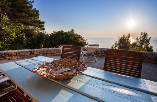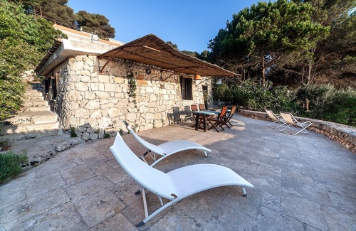 A splendid house by the sea, with a typical "pajara" (trullo) architecture, located just behind the cliff with the sea a few meters away and accessible directly from the property through a small private staircase. Ideal for 4 guests, the house is composed of a large living room, two bedrooms (with double beds), a bathroom with shower, a kitchen and a large outdoor terrace where you can enjoy a suggestive sea view and enjoy unforgettable moments of tranquility. Inside the house is furnished with style and simplicity and is equipped with mosquito nets on the door and windows, as well as utensils, dishes and linens necessary for the living room. Services include Wi-Fi, air conditioning and washing machine