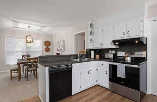 Two full bathrooms cater to your needs, complete with all essentials and a bathtub for a soothing soak. Our house is fully stocked with linens, bath towels, shower essentials, paper products, and starter k-cups, ensuring a hassle-free stay.