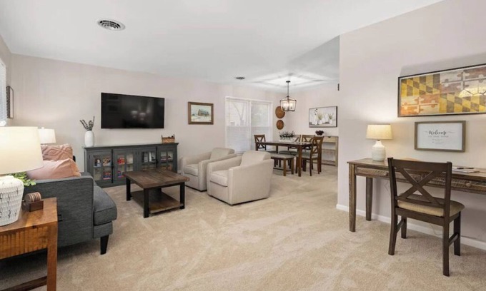 Step inside and be greeted by new flooring, fresh paint, and updated landscaping. Relax in the spacious family room, perfect for quality time and entertainment. Enjoy board games or unwind with your favorite movies on Netflix. Stay connected with fast WiFi, whether for leisure or work in the convenient office space.